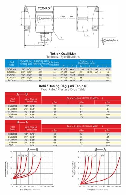 SC Serisi Hidrolik Pilot Kumandalı Çek Valfler, bir pilot basınç uygulanana kadar silindiri bir yöne kilitlerler. Akım bir yöne serbest ve diğer yöne blokelidir. X pilot girişi üzerinden pilot basınç uygulandığında tersine akıma izin verir.